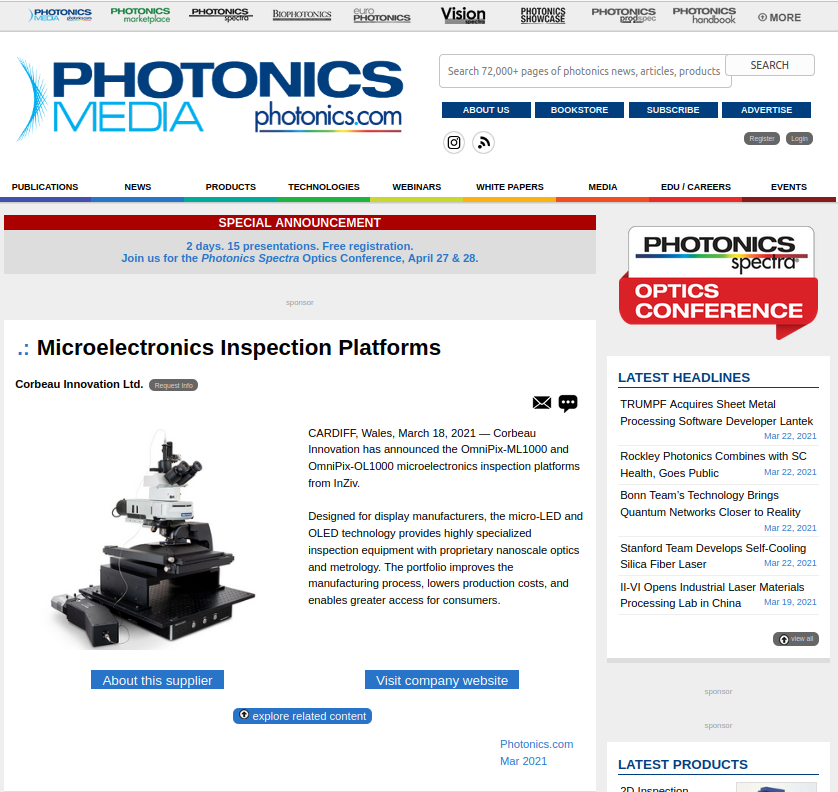 18th March 2021 - Photonics Media announces OmniPix products from Corbeau